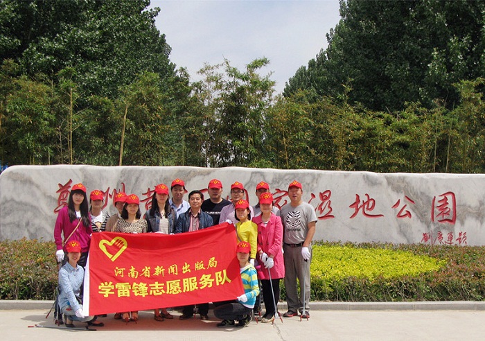 為大力踐行社會主義核心價值觀,引導局直系統(tǒng)黨員干部帶頭“做文明人、辦文明事”,五一小長假后的第一天,省新聞出版局15名青年志愿者在局直機關(guān)黨委專職副書記張培明同志的帶領(lǐng)下,一起到黃河濕地公園開展了“傳承五四薪火•志愿潔凈家園”清撿垃圾活動。經(jīng)和有關(guān)工作人員溝通,我們將活動的重點區(qū)域定在平日清潔人員疏于打掃的大道附近的草叢樹林里。志愿者們領(lǐng)到工具后,兩人一組,三人一隊,發(fā)揚不怕臟、不怕累的精神,默契配合,清理的垃圾裝滿了數(shù)十個蛇皮袋。