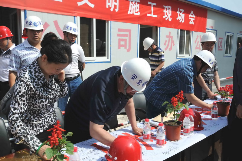 2010年6月4日,張家口住建局在我集團(tuán)六公司承建的張家口親河苑小區(qū)項(xiàng)目部召開了建筑施工安全文明施工現(xiàn)場(chǎng)會(huì),張家口市住建局局長李義、安監(jiān)站站長張芝祥及各區(qū)縣住建局、安監(jiān)站負(fù)責(zé)人,施工、監(jiān)理單位負(fù)責(zé)人共72個(gè)單位220余人出席了會(huì)議,并在我集團(tuán)安全百日賽的宣傳條幅上了簽字。
