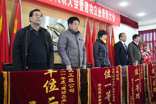 在隨后舉行的二零一一年度集團表彰大會上,由黨委副書記閆雙彥宣讀了“二零一一年度建功立業(yè)表彰決定”,并由集團公司領導對獲獎單位頒發(fā)了錦旗和獎狀。